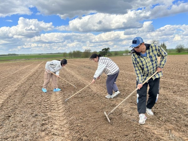 五月的白俄罗斯,春寒料峭,白俄罗斯国立农业科学院专家学生们正冒着严寒忙碌在海外农业科技示范园,开始一年一度的春季播种工作。来自中国、白罗斯、俄罗斯和欧洲的100余份小麦新品种、新品系在田间整齐排列,按照田间试验方案,海外实践导师Ivanistau Aliaksandr博士带领大家一起开沟、点播、覆土。