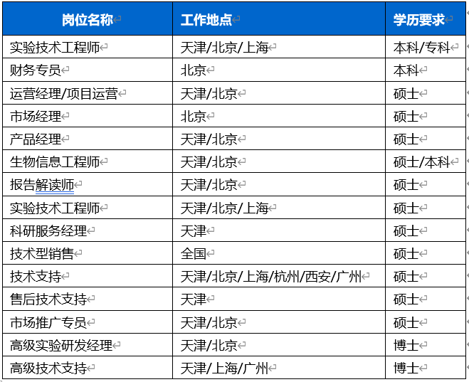 招聘专业:生物学,生物科学,医学,农学,园林, 药学,遗传学,生物信息学,生物物理学等分子生物学相关专业;