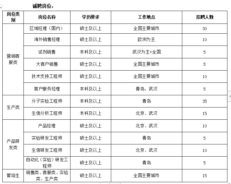 专业需求:生物信息、农学类、医学类、遗传学、分子生物学等相关专业