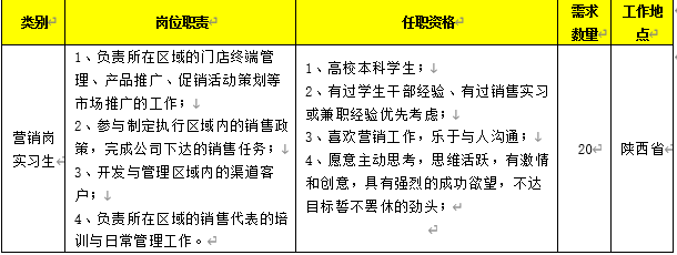 大三、大四学生,专业不限,对销售感兴趣的同学优先考虑。