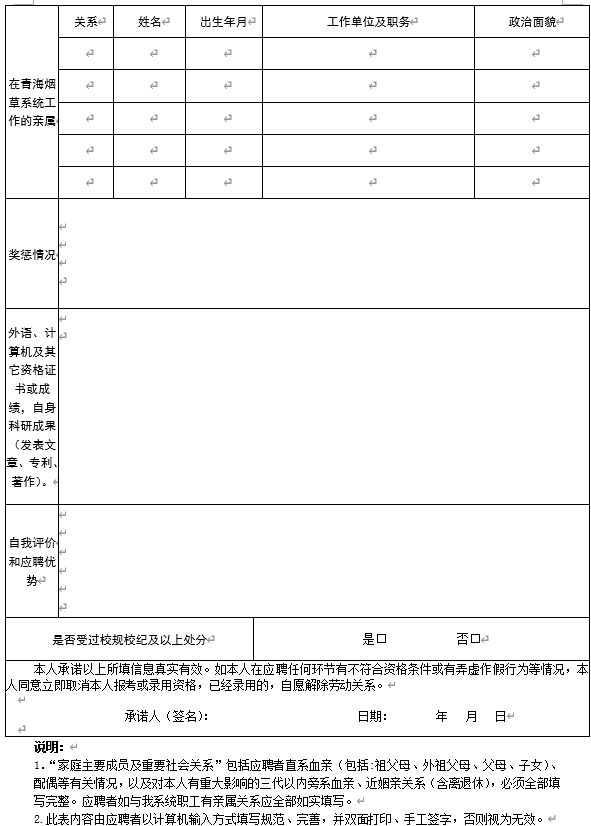 青海省烟草专卖局(公司)2025年高校毕业生招聘应聘登记表