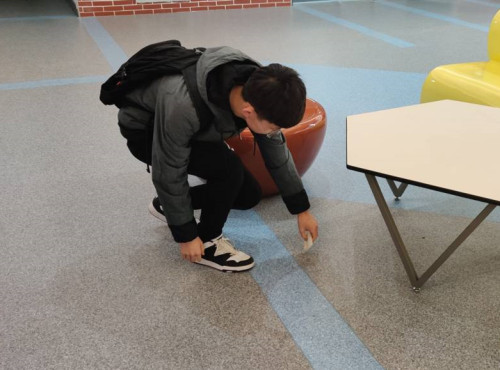 清理内容主要有自习书桌座椅下的垃圾以及书桌上的广告传单,检查大功率电器和插座使用情况;耐心地与上自习的同学进行沟通,在交流和理解中将书桌、暖气上的杂物清理干净,打扫结束后将桌椅板凳摆放整齐。此外,同学们还将部分未能及时整理的书籍、资料都统一摆放在固定位置,方便查找。