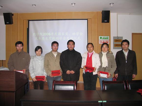12月4日,农学院院办多媒体教室里暖意融融,国家奖助学金及朱英龙助学金发放仪式在这里隆重举行。农学院党委副书记惠安堂老师、团工委书记赵普庆及辅导员彭小凤老师出席了仪式,仪式由彭小凤老师主持。