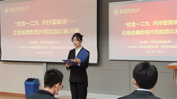 为纪念一二九爱国学生抗日救国游行的壮举,提高同学们的爱国意识和集体凝聚力,12月5日上午十点, 农学院、园艺学院与林学院共同举办“纪念一二九,共抒爱国情”主题团日活动之红色经典电影片段配音大赛。