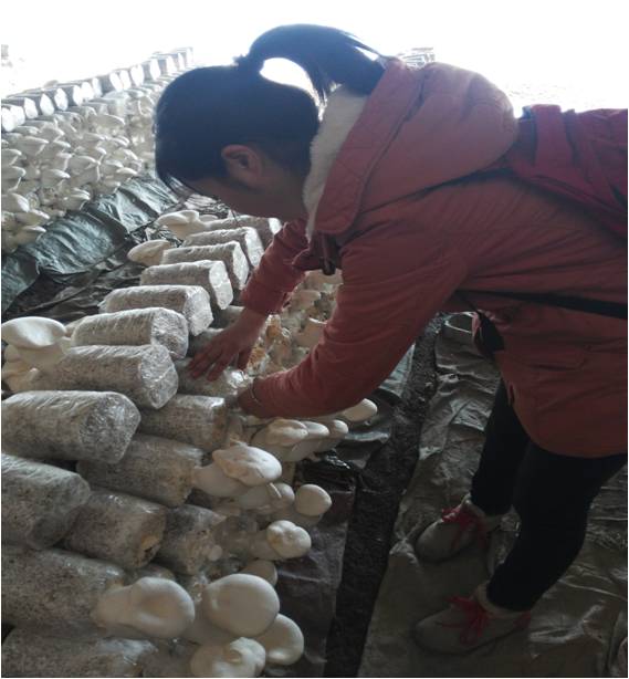 时间比较充裕,结合村长所言,我们凑巧来到白灵菇种植大棚。当阿姨给我们讲完摘菇技巧后,我们便投入了摘菇,运菇的过程中。虽然有点辛苦,但大棚中回荡着的欢声笑语,完全抹去了我们的疲劳,很充实,也很幸福。