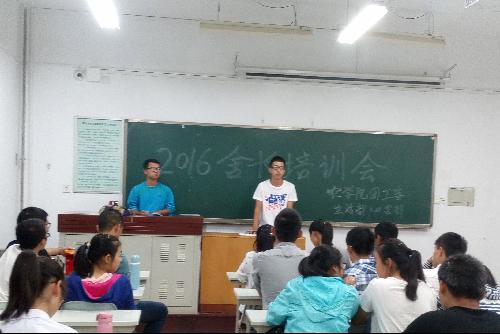 为方便本学年学生宿舍卫生检查等相关工作开展,构筑和谐宿舍,9月13日晚9:30,农学院团工委学生会生活部与心咨部联合在北校区8号教学楼开展了2016级宿舍长培训大会。