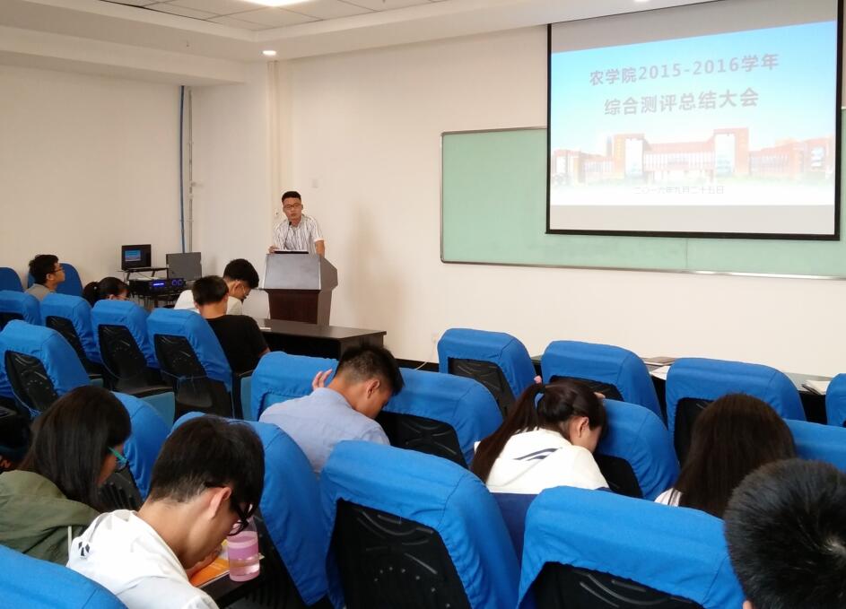 9月25日,农学院团工委学生会在农科大楼442会议室举了2015 -2016年度综合测评总结大会。团工委书记杨华,学生会主席团成员,团工委学生会各部门代表,各年级班长和支书参加了大会。