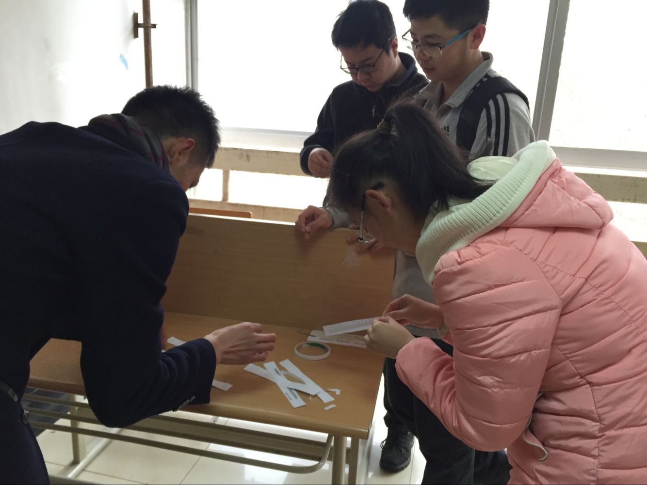活动开始前,社践委员将全班分成六组并且每组分16张事先准备的宣传标语。其中有“绷紧安全弦,奏响青春歌!”“和谐校园,共创蓝天,安全之责,尽在你我。”等等,活动开始后,每组组长带领组员分工、合作,分别把宣传标语贴在了八号教学楼的二层至六层的东、西侧和二楼中间的自习桌椅处,宣传标语贴在每张桌子靠近走道的一侧,既不影响同学们的平时学习,更是起到了提醒、叮嘱同学们的作用。