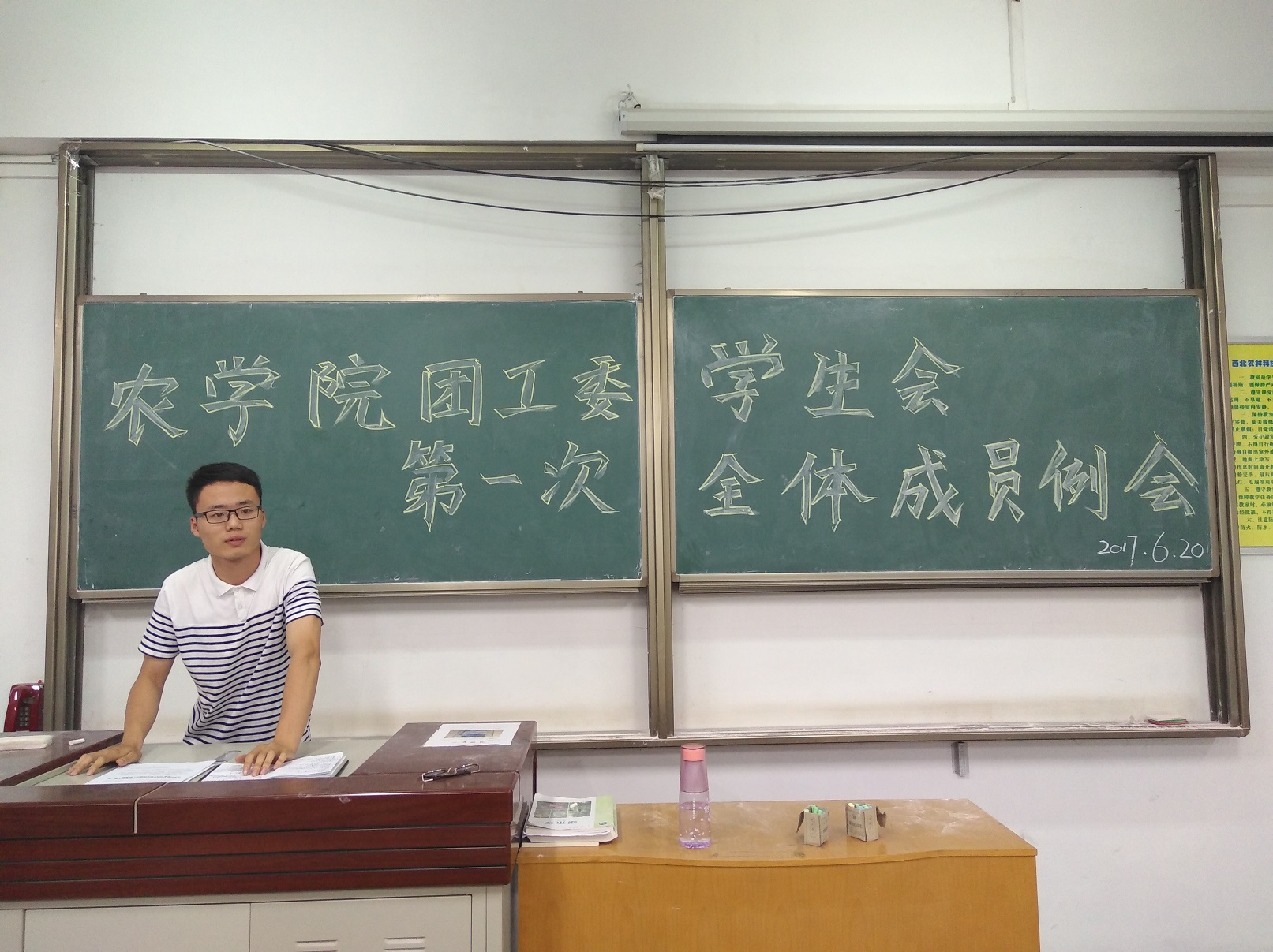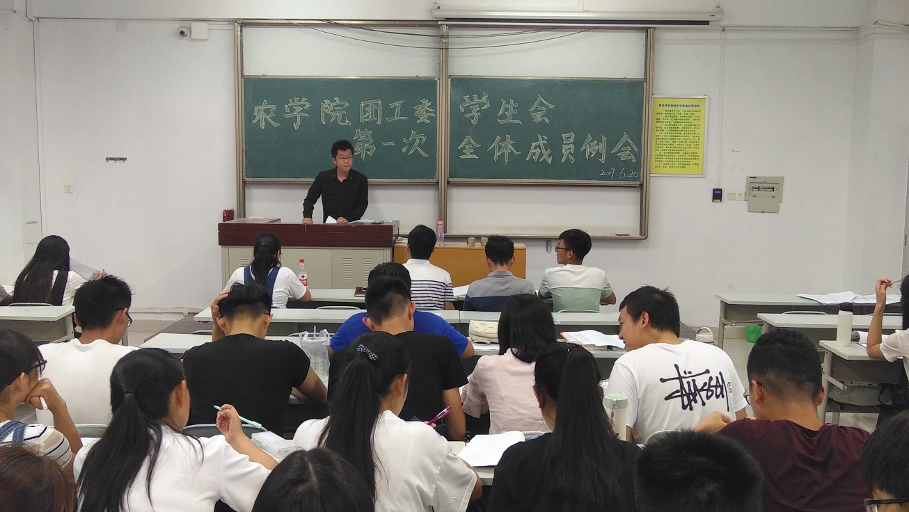 近期农学院完成新一届团工委学生会学生干部换届工作,为增进学生会成员之间相互了解,明确学生会各部门工作任务,6月20日下午7:30,农学院团工委学生会第一次全体成员例会于8118教室召开。农学院团工委书记杨华、新任团工委学生会40余名学生干部参加了此次会议。