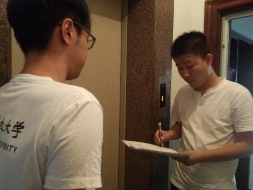 下午,队员们再次来到天津港居民区,进行上门调查。几经碰壁之后,终于在部分居民们热心的帮助下完成了调研。很多居民都认为“大学生暑期三下乡”的活动很好,能帮助大学生了解民生,服务社会,既磨练了青年大学生的意志,又培养了大学生团队合作的精神,对我们也是大有裨益。