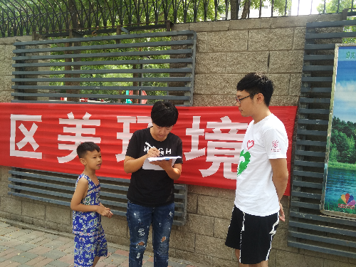 凉爽的天气让人神清气爽,路上的行人放慢了步伐,脸上挂着微笑,整个人也变得可爱了起来。“你们活动的是好的,这几天比较凉快。像前几天那种天气,真是出不来的,活动重要,身体更重要,别把自己给热坏了。”一位大叔在填写调查问卷的时候还不忘和队员们聊天,“现在啊,有空调,像我小时候啊,那时候天热啊,只能走出家门找个阴凉地方,这不,一凉快,又出来了。”填完问卷后,回头看,那个大叔坐在那里,哼着小曲,乐得自在!