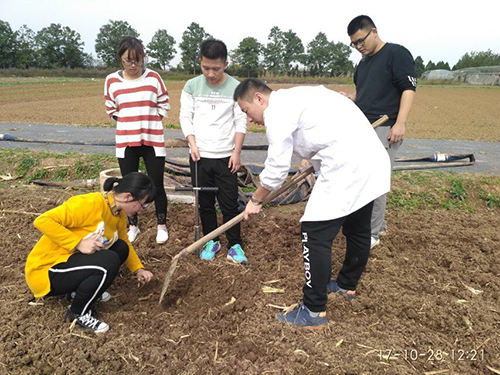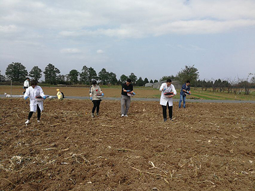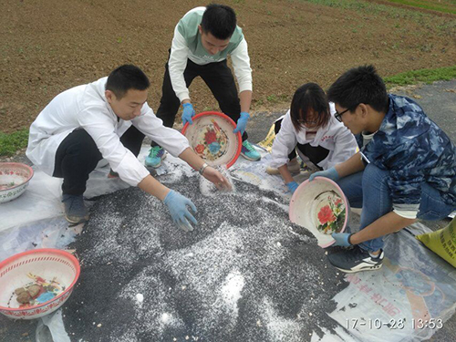2017年10月29日中午,农学院小麦高产竞赛常规组的同学们在标本区的土地上开始了撒肥播种。