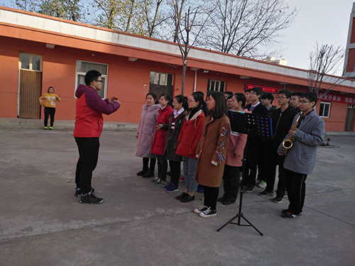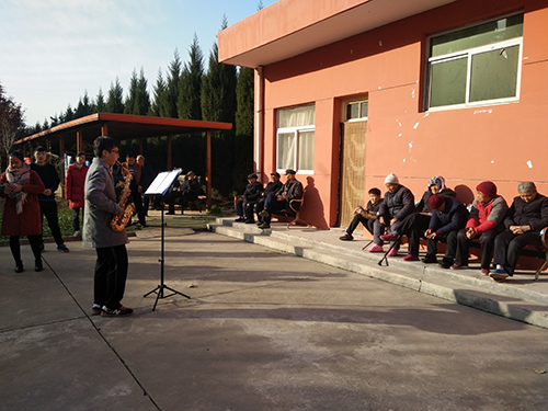 清洁工作完成后,部分同学们来到院子里,和老人们相伴而坐,聊起了天。另一部分同学也开始布置场地,准备开始提前准备好的小节目。第一个节目是由张斯亮同学带来的萨克斯独奏,一曲《回家》,节奏舒缓配上萨克斯独有的深沉,结束时老人们都纷纷鼓起掌来。接着是由庞津雯同学带来的歌曲《明月几时有》和李崇源同学的独唱《大鱼》。最后,是由1601班全体同学带来了的集体大合唱《我的中国心》,时而温情时而铿锵,将对祖国的热情,对国家社会的关切关怀表达地淋漓尽致,获得老人们一致好评,间奏时宫欣宇和于乃彬同学的武术表演,更是赢得了老人们的称赞。