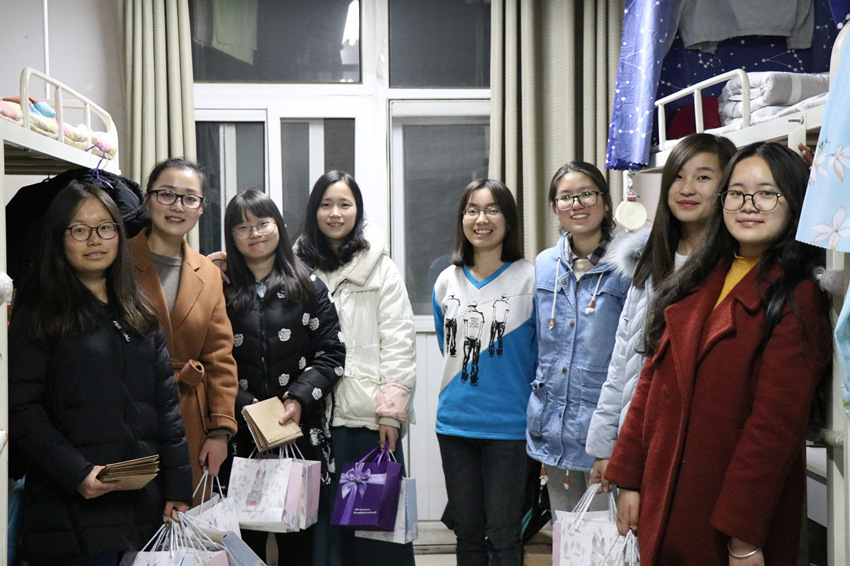 毕业生服务委员会的同学前期结合考研学生实际需求策划活动,其中精致的小卡片是整个活动的暖心点,卡片内容由与考研同学关系甚好的非考研同学书写,里面包含满满的祝福。活动当晚,沙老师深入宿舍,在发放慰问品的同时了解考研学生备考状况及存在的困难,勉励同学们把握最后冲刺阶段,调整心态,打好最后的攻坚战。虽然夜已深,但仍旧有学生坚守在自习室,沙老师为学生这份认真坚持的勇气点赞,并由衷感叹:“我们是一个温暖的大家庭,如今你们不是一个人在孤军奋战,我们一直都在,一直是你们最坚实的后盾”。