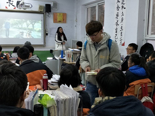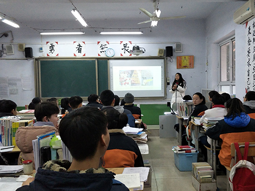 从活动开始,队伍成员就积极联系母校老师,为此次活动做了充分准备。进入学校和老师相互寒暄,讲述了各自丰富多彩的大学生活后,他们分成三个小组,走入了正在自习课上的高三班级。邻近春节,一模考试才刚结束,高三学生仍然艰苦学习着,为最后的目标奋力冲刺。说明来意后,主讲人毋莹以PPT的形式,总结了高三同学当下的学习方法,又从自己的大学生活展示了西北农林科技大学深厚的历史积淀、独特的专业特色和优美的学习环境等学校概况,鼓励高三同学确立目标,向着西农甚至更好的学校努力。过程中高三同学对大学生活都很向往,积极提问了大学的学习方式和西农的一些专业方向,宣讲取得了不错的反响。最后,队员又以《诚朴勇毅》这一西农学子自我创作的歌曲MV为结尾调动气氛,发放学校宣传资料与纪念品,结束了此次宣讲。