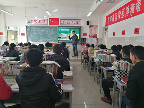 2月4日上午,回访小队依次在高三⑴~⑷四个班级进行宣讲。队员从学校概况、学科设置、学校生活、招生情况4个方面展开宣讲,着重介绍了学校悠久的历史、强势的学科、完备的人才培养体系、优美的校园环境以及富有情怀的学校福利。讲到西农的科研成果时,同学们十分安静,认真聆听,表达着对科研人员的崇敬;当看到西农樱花路、苦楝广场、小西湖等的图片时,同学们发自内心地感叹西农的美丽;“白吃白喝大学”发的福利更是让同学们羡慕不已,不得不再一次感叹西农广博的人文情怀。