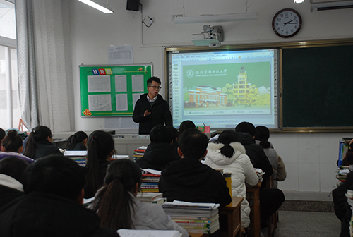 结束对老师的探望之后队员们利用下午第一节自习课的时间,按照预定计划分为两组同时进入两个班级进行宣讲。通过播放影像资料、结合ppt讲解、互动等途径介绍了西农悠久的历史文化、完备的专业设置以及丰富的校园生活。队员们也就志愿的报考,学习复习的方法等积极的与同学们进行了分享。