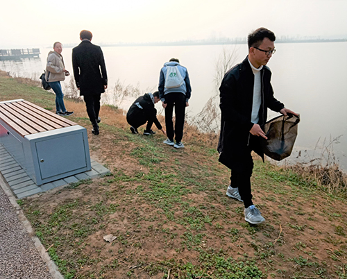 上午8点半,农学、资环实践部所有志愿者在南门口集合完毕,接着开始了近八公里的骑行,马路上车辆穿行,大家相互照顾,谈笑和谐。近四十分钟,志愿者们抵达渭河湿地生态公园。天色较暗,大家聚一起拍过合照过后,志愿者们开始按原计划沿渭河湿地公园东西走向兵分两路清洁河岸垃圾。