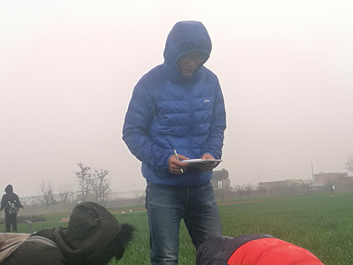 3月18日下午,小麦秋播高产竞赛杂交组的同学们聚集在农学院教学标本区的麦田,在小麦进入返青期后统计小麦春季分蘖数,与之前的记录的冬季分蘖数进行比较,从而对产量做出一个大概预估。