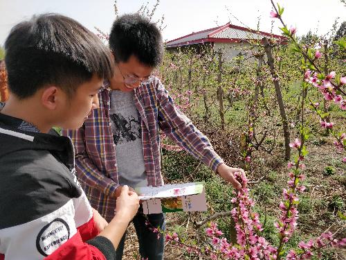 合作社负责人带领着队员进入果园,并且向他们分发了相关的知识手册。负责人说道:“果园管理相当不容易,需要大量的知识与经验的积累,稍一疏忽就有可能出现各种问题。希望大家在帮忙的同时也能学到不少的知识,今年等桃子熟了大家就过来吃。”队员们和负责人走在果园里,认真听着负责人讲解着果树、果苗的花期管理,看着满园盛开的桃花,想象着硕果累累的果园。负责人着重提到了在果树花期应该注重的倒春寒问题,可以通过延迟萌芽、喷盐水、树干涂白等方式抵御冻害,清明节的倒春寒确实对果园造成了一定的损失,但就是因为之前通过一定的防范措施才避免了更大的损失。一下午的时间稍纵即逝,到了返校时间,但同学们听得却意犹未尽,只能等下次活动继续学习了。