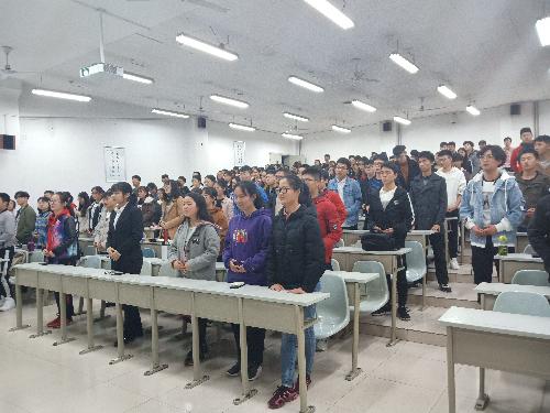 “春天的花开秋天的风以及冬天的落阳,忧郁的青春年少的我曾经无知的这么想”伴着熟悉的旋律,刘威老师徐徐走上台,在简单的自我介绍之后,开始一一为大家讲解今天的内容。同学们端正坐姿,目视老师,认真听讲。