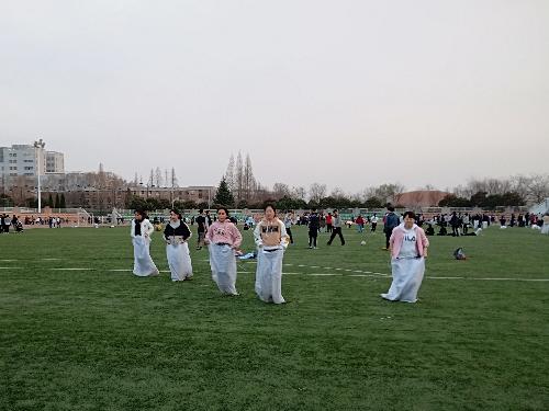本次参加春训的队员,都报名了校运会和趣味运动会的部分项目。春训不仅成为了他们在运动会前接受系统性训练的重要途径,还是督促他们提高自身体育技能,增强个人意志的活动。跑道上,春训负责人一边在为短跑、长跑运动员测速,一边在运动员经过时鼓励着他们,运动员们也调整着自己的气息,期待有所突破。同时,绿茵场里,参加“袋鼠跳”、“两人三足”等项目的运动员也在努力训练着。袋鼠跳运动员拖着训练用的袋子,用力地向前跳动。“两人三足”运动员们,也已经由开训时的“东倒西歪”转变为能够默契合作,流畅前进。训练结束的队员在指导人员的带领下进行着拉伸放松,他们在绿茵场中排开,整齐而壮观,成为了一道亮丽的风景线。本次春训在一定程度上还促进了同学们之间的交流。参加“两人三足”的运动员表示,在一起训练使她们之间拥有了更大的默契。