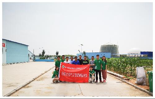 接下来,服务队来到了当地大型沼气工程企业—农丰农业有限公司,位于神木市中鸡镇纳林采当村。这个公司的建设规模庞大,养殖的品种和数量可观,牛羊猪存栏量能达到6500头左右。他们主要是以沼气工程为主,通过精准扶贫带动其他周围村庄的发展。工厂每天产生的沼气可以满足自身的能源需求。由于神木市温差较大,且沼气工程在低温下的发酵效果差,难度大,他们还自主设计开发了发酵罐配套保温系统。
