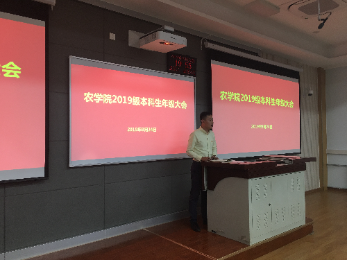 2019年9月24日,农学院于北校区8t11举办了农学院2019级本科生年级大会。大会开始,2019级辅导员夏可阳老师就宗教问题向同同学们进行了讲解。首先,坚持宗教与教育相分离的原则,坚持以马克思主义为指导,培养全面发展的中国特色社会主义合格建设者和可靠接班人。二,中华人民共和国有宗教自由,但是自由有相对性,在校学生有宗教信仰的自由,但是不得聚众组织宗教活动,制作传播和宗教有关的视频等。三,正确区分民族和宗教的概念,有些民族中大多数人都信仰宗教,但是不能将民族和宗教进行捆绑。随后,夏老师再一次强调了学生的钱财问题,涉及到钱财的事件都需经过思考以后再做出决定,除此之外,学生家长也应提高警惕,严防被骗。接下来,夏老师就宿舍卫生方面对19级新生提出了要求,宿舍是同学们生活的地方,宿舍成员应一起努力营造干净整洁的宿舍环境。最后,夏老师指出,19级本科生的本质是学生,最主要的任务是学习,要在保证自己学习成绩不受影响的基础上再参加各项社团活动来丰富大学生活。同时,夏老师鼓励同学们积极加入学生会,服务同学们的同时培养更多的如组织,创新,宣传等能力,在为同学们的服务之中提升自己。接下来农学院团委学生会主席张凯烨同学为同学们简略地介绍了学生会工作,各部门主要职责以及各部门负责人。最后,各部门负责人依次上台为同学们进行自己部门的详细讲解。讲解时,各部门负责人积极热情,19级同学们也积极踊跃,对加入学生工作也充满了兴趣和期待。