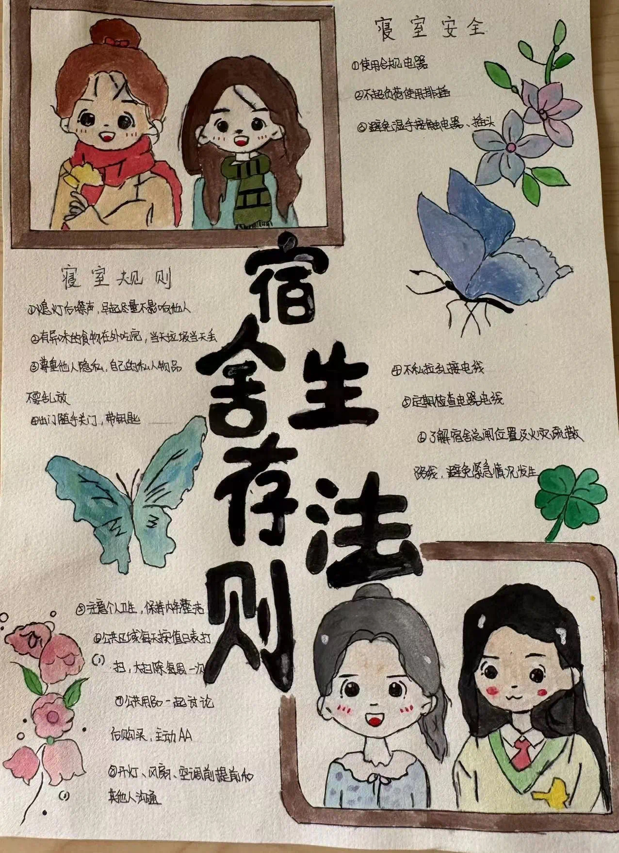活动推出后,共有53间寝室设计了寝室公约,这些寝室公约幽默中透露着温馨,调皮又不失友爱,简约而不失大气,华丽而不失温婉。以言语书写温情,以行动展现感情,平淡之中彰显了寝室命运共同体这一理念。