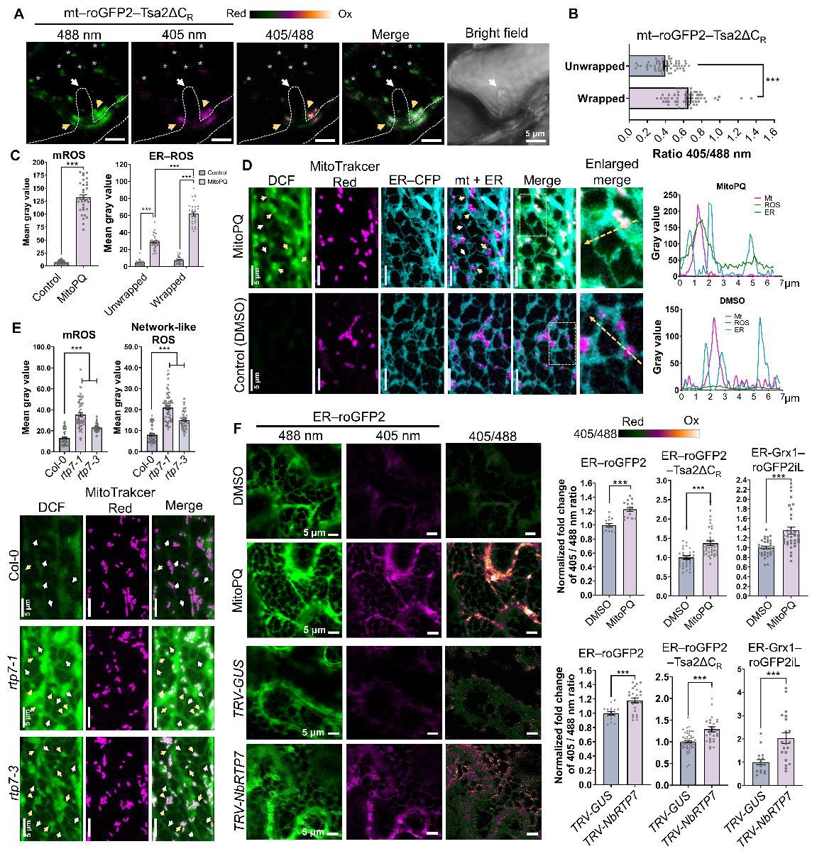 近日,单卫星教授课题组在学术期刊Science Advances发表题为Mitochondrial ROS trigger inter-organellular signaling and prime ER processes to establish enhanced plant immunity的研究论文,揭示了一条独立于质外体ROS与叶绿体ROS的ROS免疫信号通路:发现线粒体产生的mROS是植物响应病菌侵染的早期信号分子,通过促进线粒体—内质网互作转运至内质网,进而激发植物内质网应激反应及其介导的植物免疫激活的新机制。