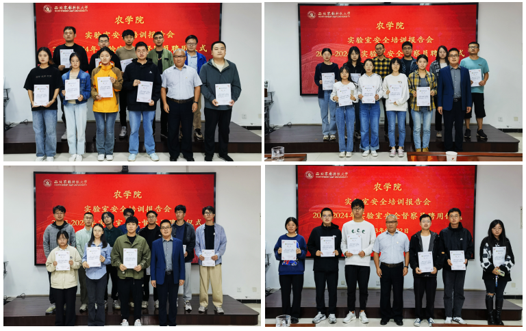 农学院实验室安全培训和安全督察员聘用制度是农学院加强实验室安全巡查制度的重要组成部分,是切实落实和监督各实验室安全生产的重大举措。学院不定期聘请领域内相关专家讲座对全院师生进行安全教育和培训,强化实验室安全氛围。督察员聘用以一个学年为聘期,2023-2024学年是该制度实施以来的第二个聘期,其运行机制在实验室安全检查和整改中得到了充分的验证,发挥了巨大引领和示范作用。