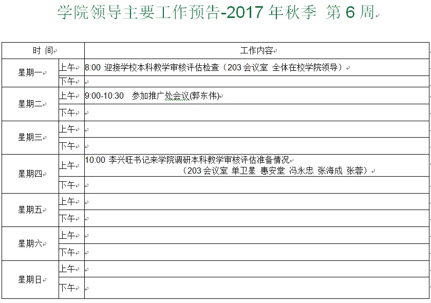 学院领导主要工作预告-2017年秋季 第6周