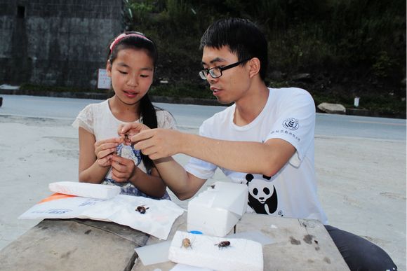 植物标本制作由服务队队员,来自农学院的博士研究生邓健负责讲授。孩子们在邓健的带领下,采集了具有代表性的几株植物。随后邓健用提前准备好的标本夹以边演讲边示范的方式向孩子们讲解了简单标本的制作方法。昆虫标本制作由来自植保学院研究生左亚运负责讲授,孩子们用自己制作的简易捕虫网捕捉到了各类昆虫,随后左亚运运用自己的专业知识向孩子们简单讲解了昆虫的分类,而后带领孩子们用简易的工具制作了昆虫标本。