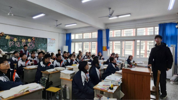 1月22日上午九点,来自农学院的陶子同学、机电学院的范少易同学、人文学院的高帅同学以及信工学院的薛松岩同学组成了回访团队,回到高中母校——河南省修武县第一中学,进行回访交流,为学弟学妹们带来了一场别开生面的分享会。