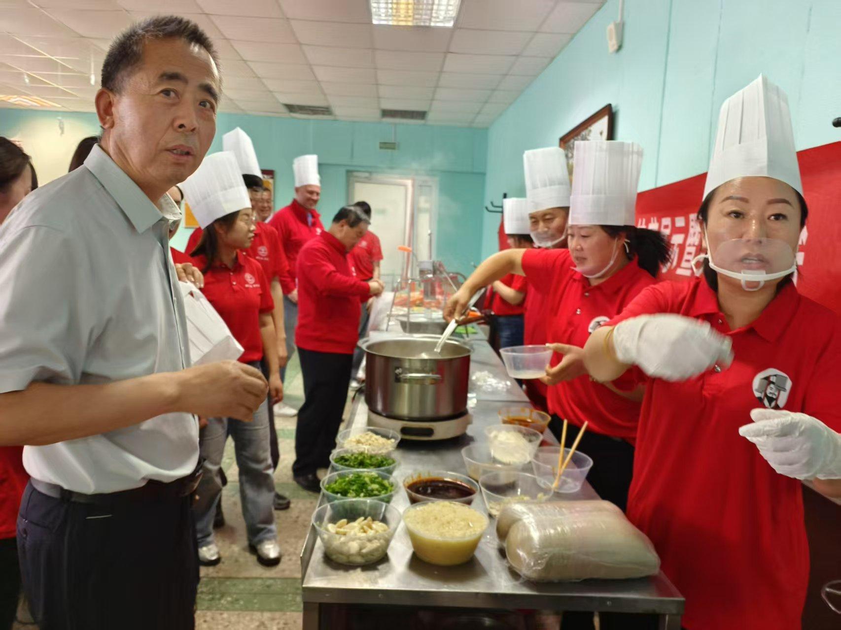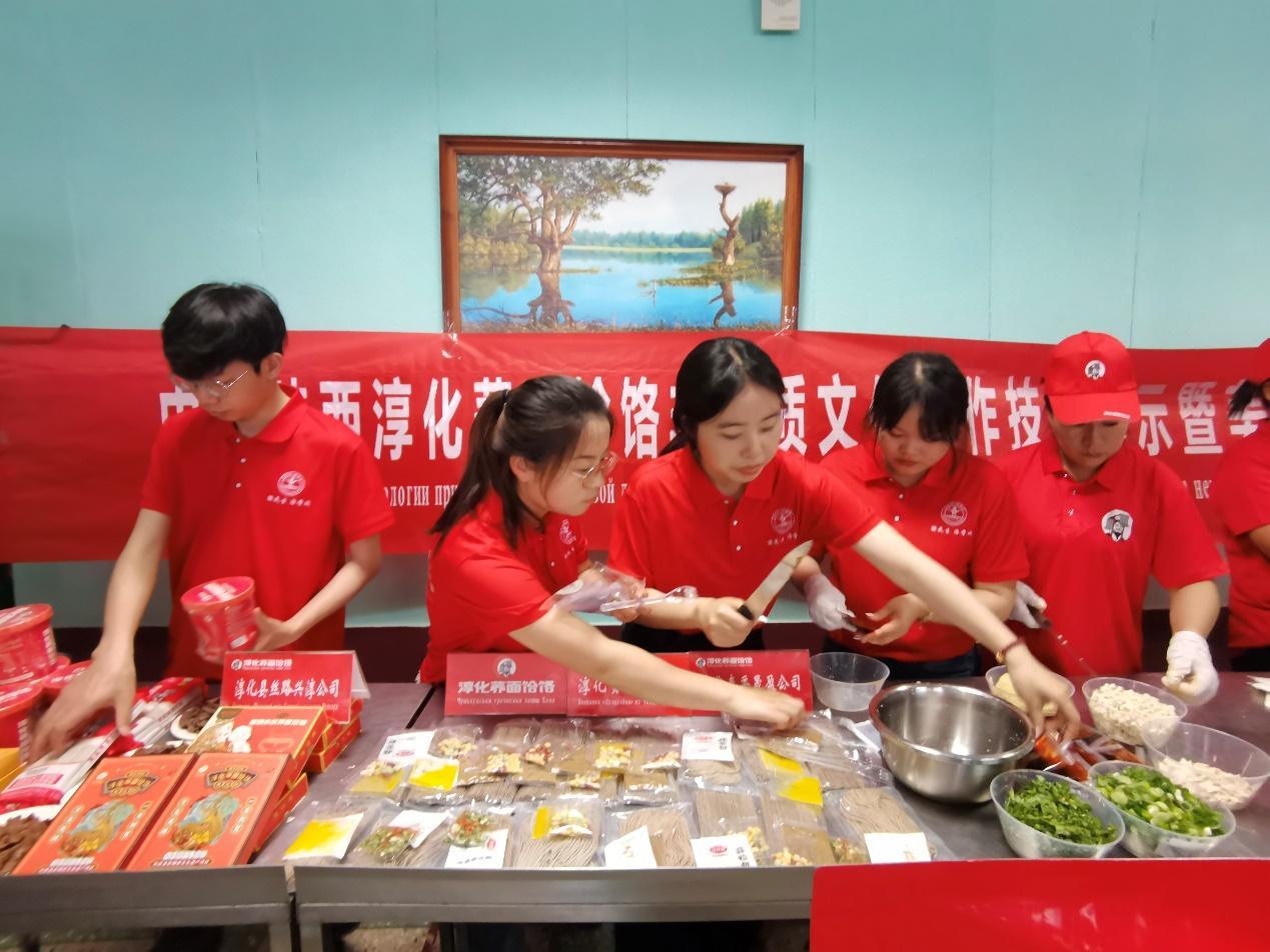 仪式结束后,代表团考察了示范园2025年种植的作物长势及新型农业机械的示范推广情况。此外,在白俄罗斯国立农业科学院举行西北农林科技大学淳化荞麦产业发展研究院举行的中国陕西淳化荞面饸饹非物质文化制作技艺展示暨美食品鉴会,现场展示荞麦饸饹制作工艺与技术,来自中白两国的50余名师生参加了品鉴会,一碗碗承载着千年农耕智慧的饸饹唤醒白俄师生的味蕾,标志着淳化荞麦饸饹系列产品走出国门。