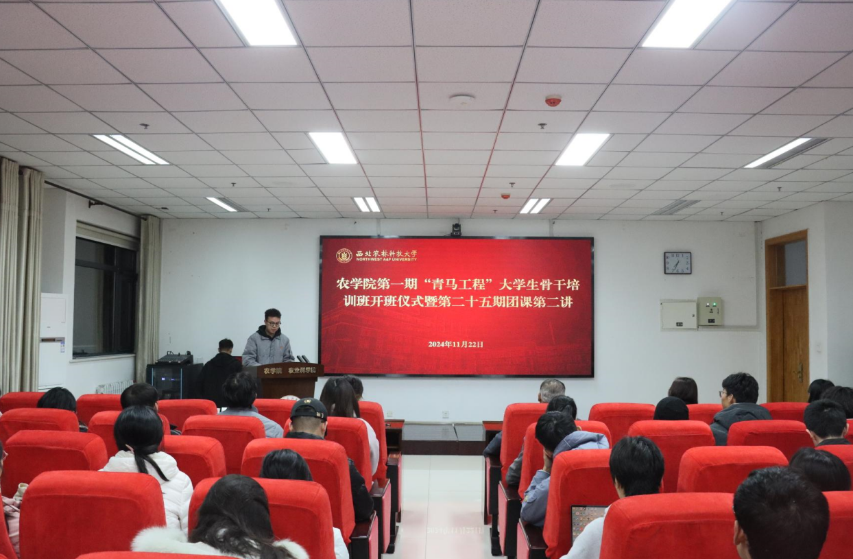 为深入学习贯彻党的二十届三中全会精神,加强学院青年思想建设,培养一批具有忠诚政治品格、浓厚家国情怀、扎实理论功底、突出能力素质的青年马克思主义者,11月22日,农学院第一期“青马工程”开班仪式暨分团校第二期团课在农学院报告厅顺利举行。农学院党委书记张海成出席开班仪式,马克思主义学院副教授隋牧蓉受邀讲授第二期团课,辅导员王钰凡、蔡艳旭,团委学生会全体骨干、入党发展对象近80人参加开班仪式。仪式由学院团委副书记黄宾主持,在庄严的国歌声中仪式正式拉开帷幕。