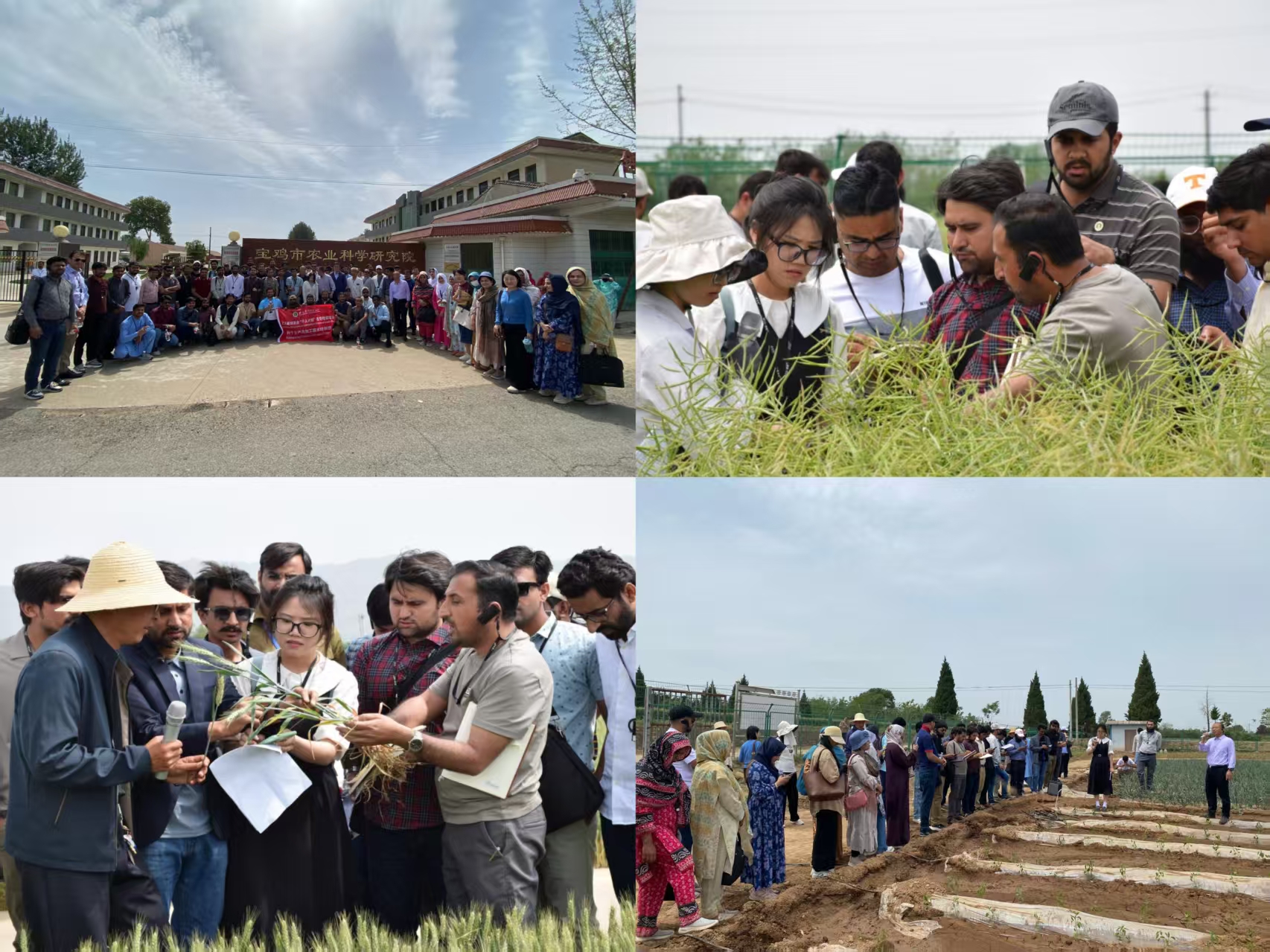 在宝鸡市农业科学研究院,国家谷子高粱产业技术体系岗位专家冯佰利教授、宝鸡市农业科学研究院党委书记张锁良及总农艺师曹小丽等专家团队热情接待了学员。学员们实地参观了小麦、甘薯、油菜及辣椒试验田,听取了各领域科研人员的详细讲解。小麦所副所长陈三乐、甘薯所所长王钊、油菜所青年骨干史一苇、辣油所所长辛鑫等分别介绍了作物育种、高效田间管理及病虫害防治等关键技术,并与学员展开热烈讨论。学员们对中国专家无私分享的先进技术深表赞叹,纷纷表示要将这些经验带回巴基斯坦,助力当地农业发展。