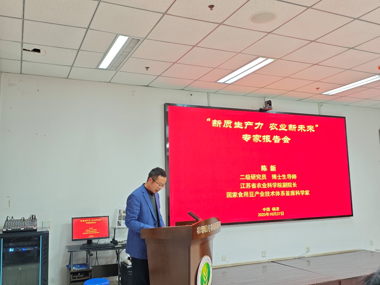 2025年10月27日,江苏农科院副院长、国家食用豆产业技术体系首席专家陈新研究员应邀来我校农学院216报告厅,为师生带来一场以“食用豆产业技术体系研究进展及未来发展方向”为题的精彩报告。农学院师生及强农智研协会等大学生社团120余人现场聆听。