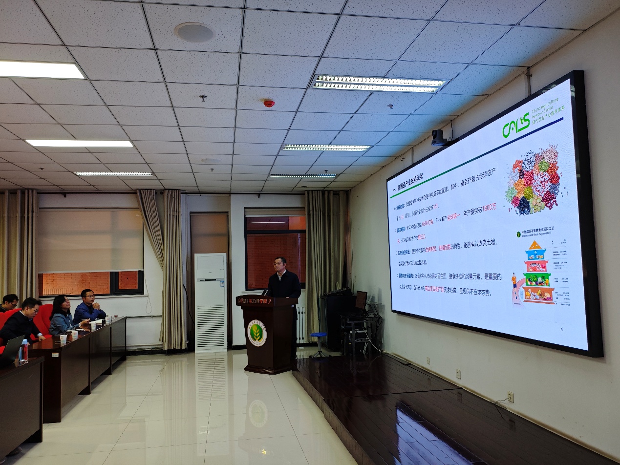 陈新研究员从食用豆产业现状、资源研究进展、育种技术与方法研究进展、品种选育与产业化应用及未来研究与发展方向展开汇报,带领我校师生了解食用豆产业现状及未来发展方向。陈新研究院指出,食用豆种类丰富、是优质食物蛋白来源,在土壤改良及人类大食物观方面具有重要意义。随着人们健康意识提升及国家乡村振兴战略的实施和农业供给侧结构性改革的推进,给食用豆产业带来新机遇。食用豆智能育种、功能型品种选育及植物蛋白产品研发是未来发展方向,西北农林科技大学杂粮科技创新团队从事食用豆研究具有较长的历史和良好基础,未来可以双方合作共同推进食用豆产业发展。