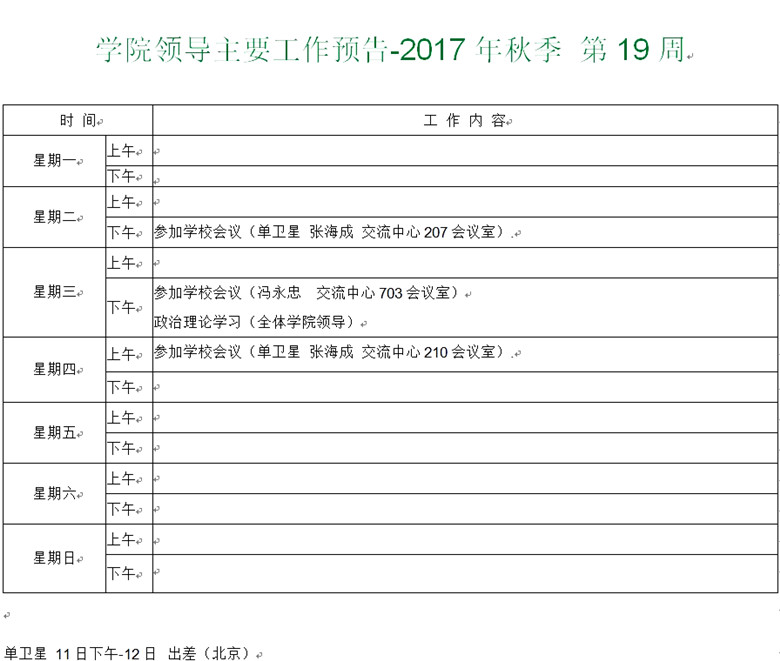 学院领导主要工作预告-2017年秋季 第19周