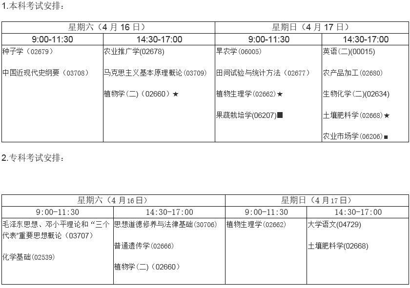 2016年春季报名具体时间为2016年3月1日-3月5日,考试时间为4月16日-4月17日,具体考试科目见下表。