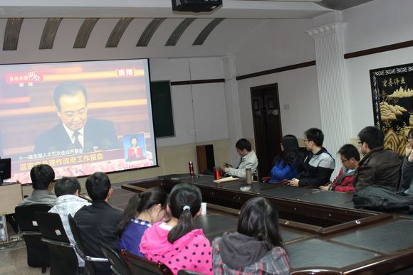 大学生第二党支部学生党员在收看温家宝总理做政府工作报告