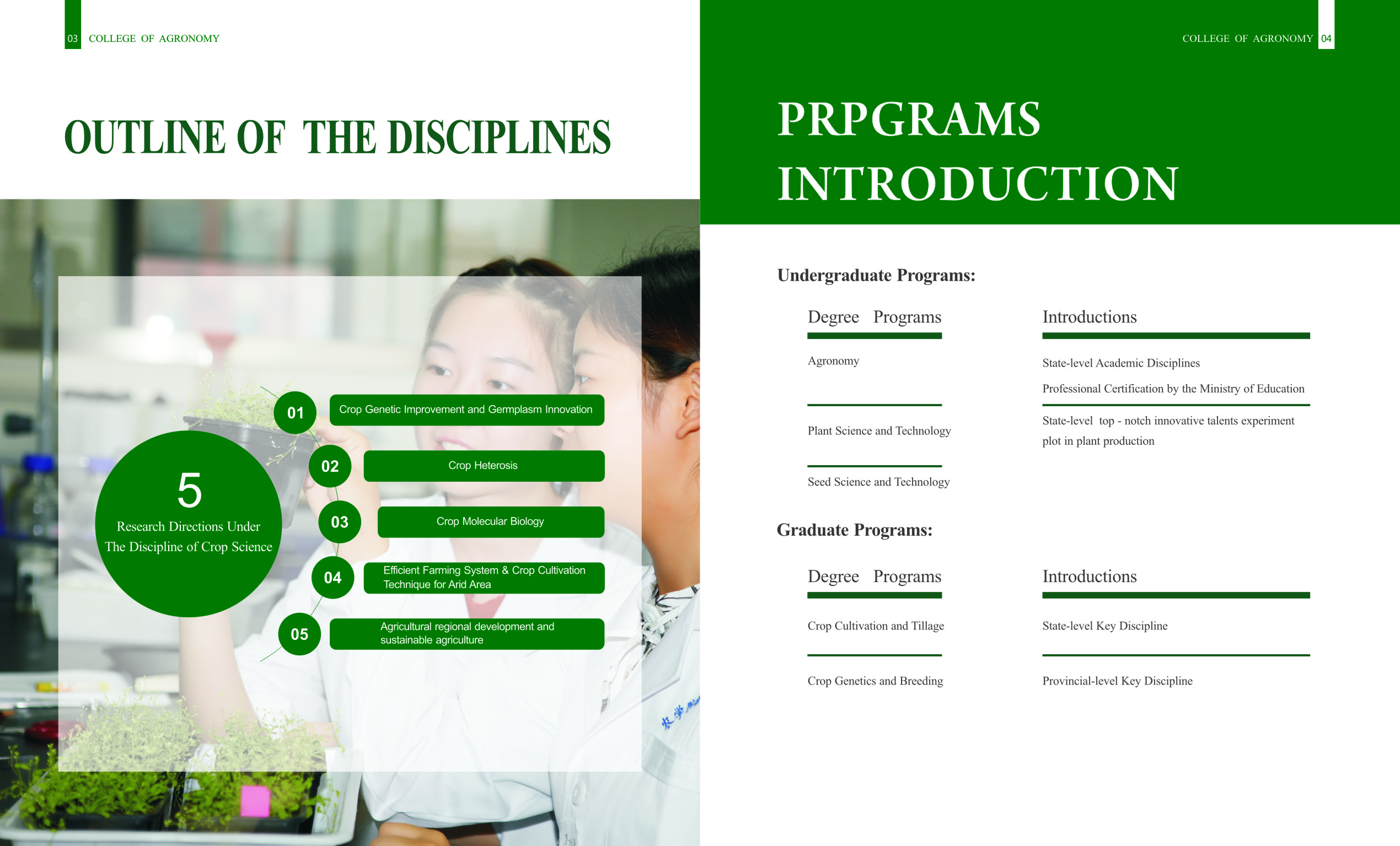The discipline aims at national food security and the development of agriculture in arid areas. We dedicate to innovative crop genetics and breeding, germplasm resources and dryland farming theory and technology, including wheat, maize, rape and other crops, in northwestern China and the major national grain-production areas. We are trying to develop an internationally renowned, nationally first-class crop science discipline, by keeping being an international leader in wheat genetics and breeding, and by strengthening dryland farming and minor cereal crops research being internationally first-class.