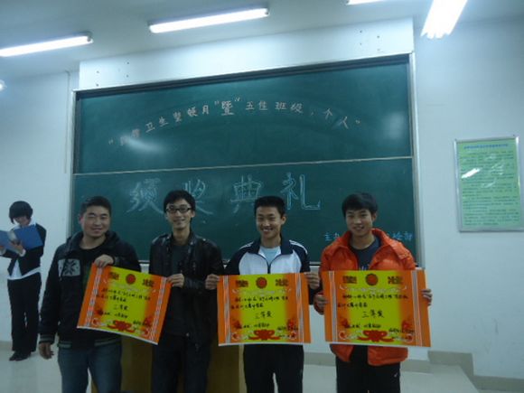 11月21日晚7:10,我院于6B51教室举办“纪律卫生整顿月暨五佳班级、个人颁奖”活动。出席该次活动的有我院辅导员林杰老师、主席团、校纪检部部长及大一、大二同学共一百余人。