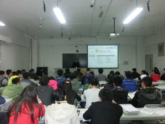 讲座中,郭老师为大家介绍了我校团委下设机构概况,侧重分析了校团委直属部门的工作性质和工作要求,强调了大学生参与文体活动对促进自身全面发展的重要性。期间,他向大家逐一介绍了校团委的人员构成、职能部门、直属机构、学生组织及下派机构。在对我校文化艺术节、科创活动、社建活动及大学生百场素质报告会等特色文化活动的介绍中,他结合亲身经历向大家作了生动的讲解。