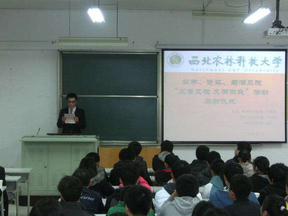 为积极响应学校开展“五个文明工程”的活动号召,规范学生的日常行为,帮助学生养成良好的学习和生活习惯。11月18日晚,由农学院、资环学院、葡萄酒学院联合举办的“互督互检 文明你我”活动启动仪式在北校区N8208教室隆重举行。