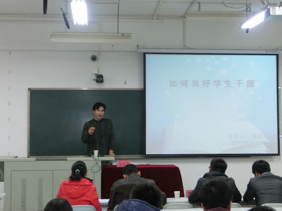 在课堂上,马志宏副书记首先肯定了学生干部在学院教育管理中的贡献。他指出,广大学生干部是思想教育工作的重要力量,因此,提高学生干部在写作、社交,口才、管理等方面的综合能力,必会对学院学生工作产生积极的影响。