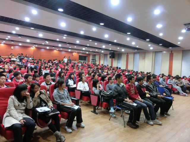 一身黑色制服配上简单的马尾,李娜老师一出现就给人一种端庄却又不失青春活泼之感。李娜老师以如何读大学作为切入点,结合自身经历和当代大学生的实际情况,分别从如何看待学习问题、如何确定奋斗方向、如何有效管理时间、如何管理情绪及如何度过大学生活五个方面向同学们介绍了她眼中的大学。在谈到学习问题时,李娜老师强调:“学习不能仅局限于书本知识,还要随人学习,随事学习,随时学习,随地学习。”当谈及奋斗方向时,李娜老师教导同学们要将近期目标和远期目标相结合,将现实与理想相结合,将求知与成长相结合,科学规划自己的人生道路。李娜老师的讲座在现场一起集体朗诵汪国真的现代诗《生活》中结束。
