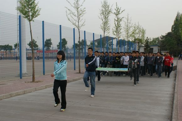 原来,他们是在为迎接两天之后的运动会而紧急加训。为了在开幕式上充分展示我院方阵的精神面貌,我院纪检部和组织部认真地监督大家训练,并不断鼓励大家要拿出最好的状态为学院争光。同学们克服了早起带来的困倦和晚上训练的疲惫,在领队的响亮口号下,精神集中,步伐一致,眼神中透露着坚定和自信。
