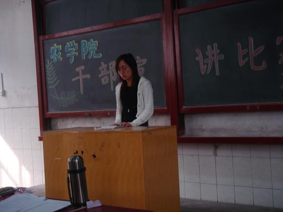 1月12日,农学院团工委学生会在北校区4151举行了干部演讲赛。各学生干部围绕“我 学生会 梦想”畅谈了自己这学期的感受与理想,有的充满了诗情画意,有的则是激荡澎湃,也有的充满了诚挚的深情。每个人都展示了自己的风采,亮出了真实的自我,最后主席团成员也发表了精彩的演讲。